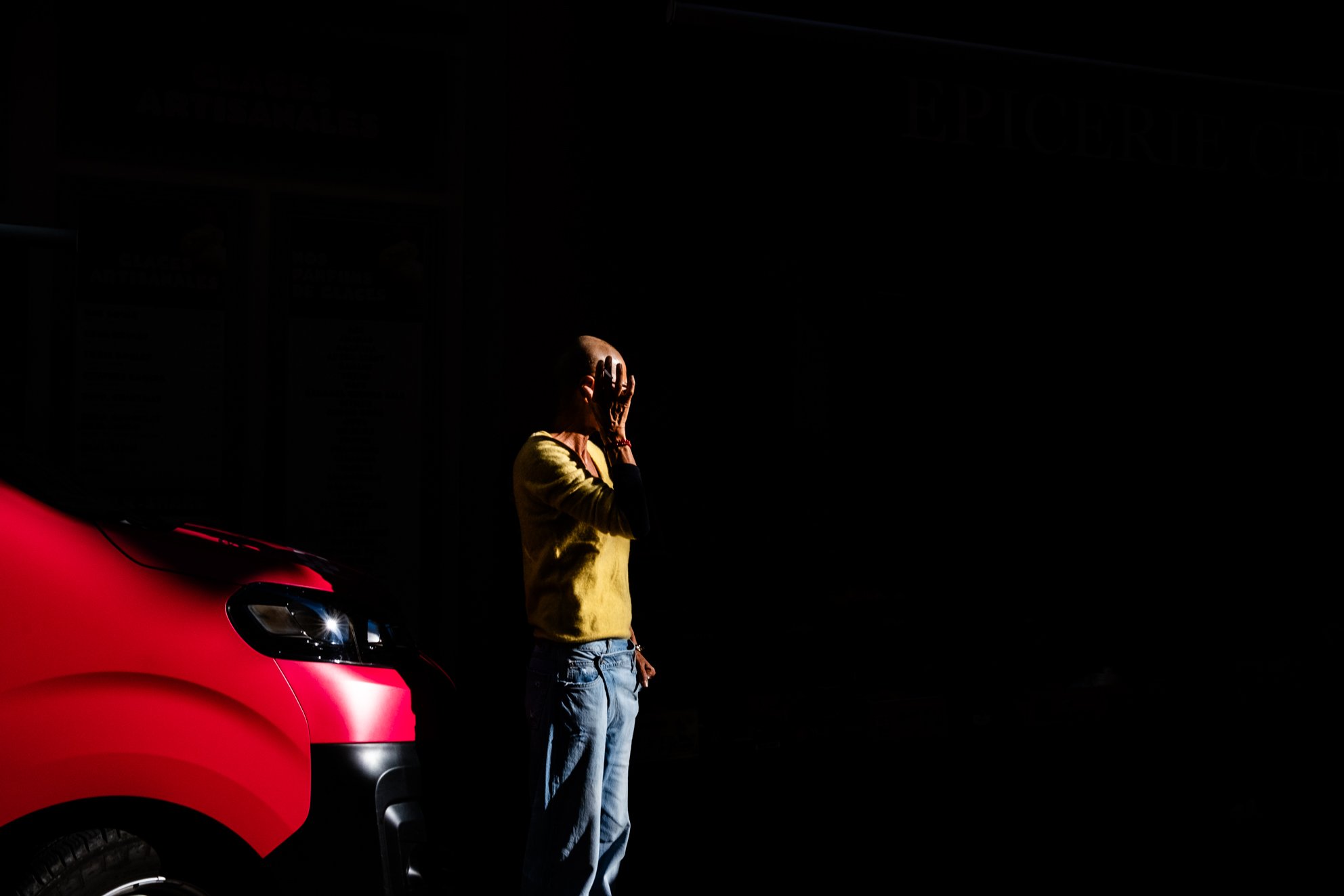 Her carefully crafted compositions play on contrasts and frames in which passers-by become involuntary actors in a play that they are unaware of. Her images are invitations to fight against emotional and visual grayness, to look beyond the obvious and discover the poetry hidden in the shadows and lights of our environments.